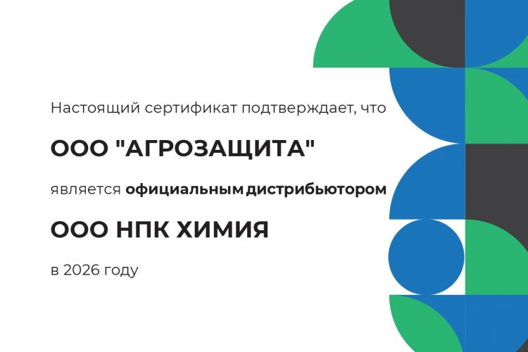 Компания ООО «Агрозащита» признана официальным дистрибьютором продукции ООО «НПК Химия». Полученный сертификат подтверждает полномочия организации на распространение средств защиты растений,...